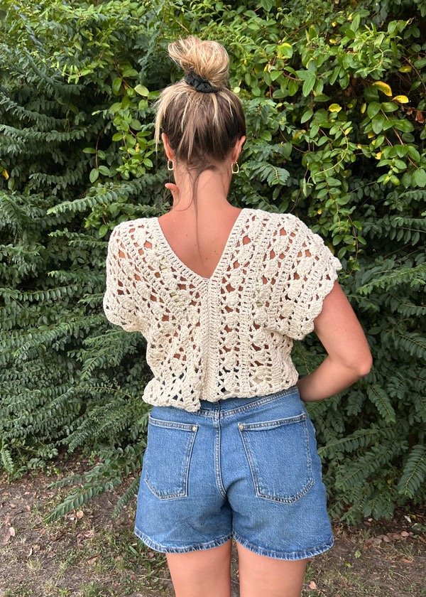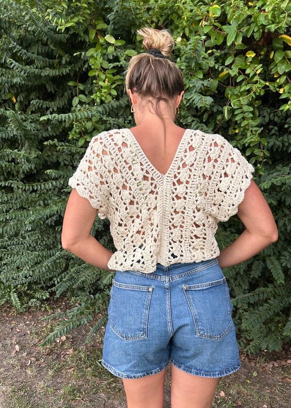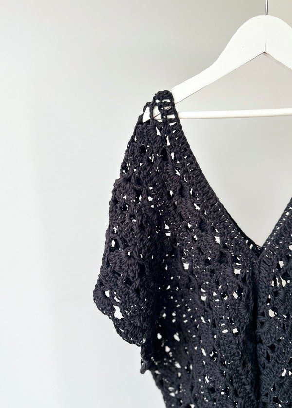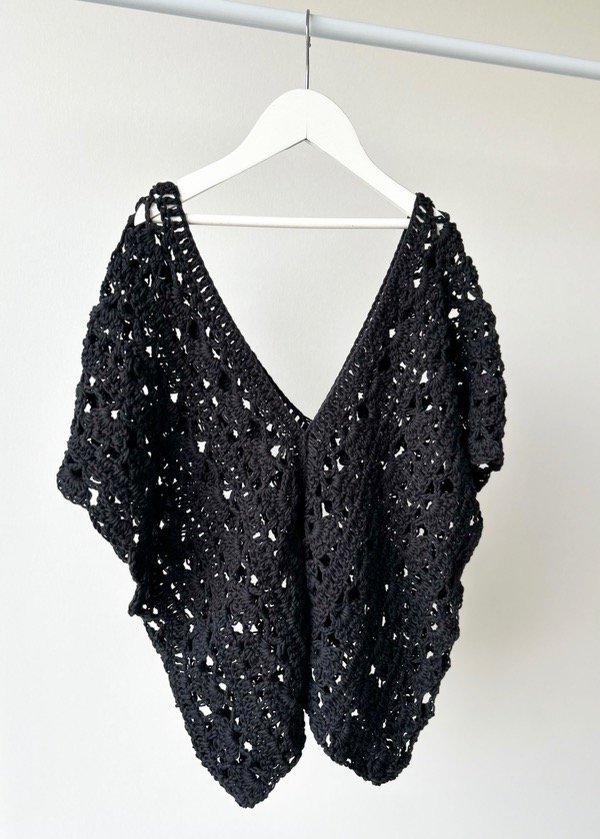 Blusa calada con amplio escote, estilo oversize - 100% algodón peinado - Tejida a mano.