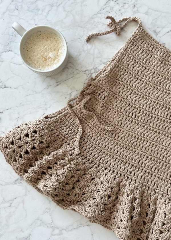 Musculosa con tiras regulables en hombros y lazos de ajuste en laterales. Bolados en terminación - 100% algodón peinado - Tejida a mano.
